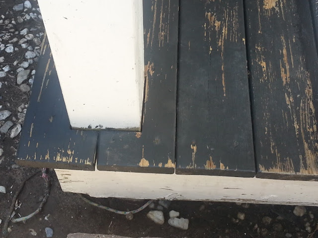 We've got two decks - one on the 2nd story off of our "office" that's about 8 feet by 12 feet, and a smaller one off our back door that's about 5 feet square. As you can see in the pic above, it needs some TLB and the trim needs to be painted again. By far, this poor thing gets the most weather.